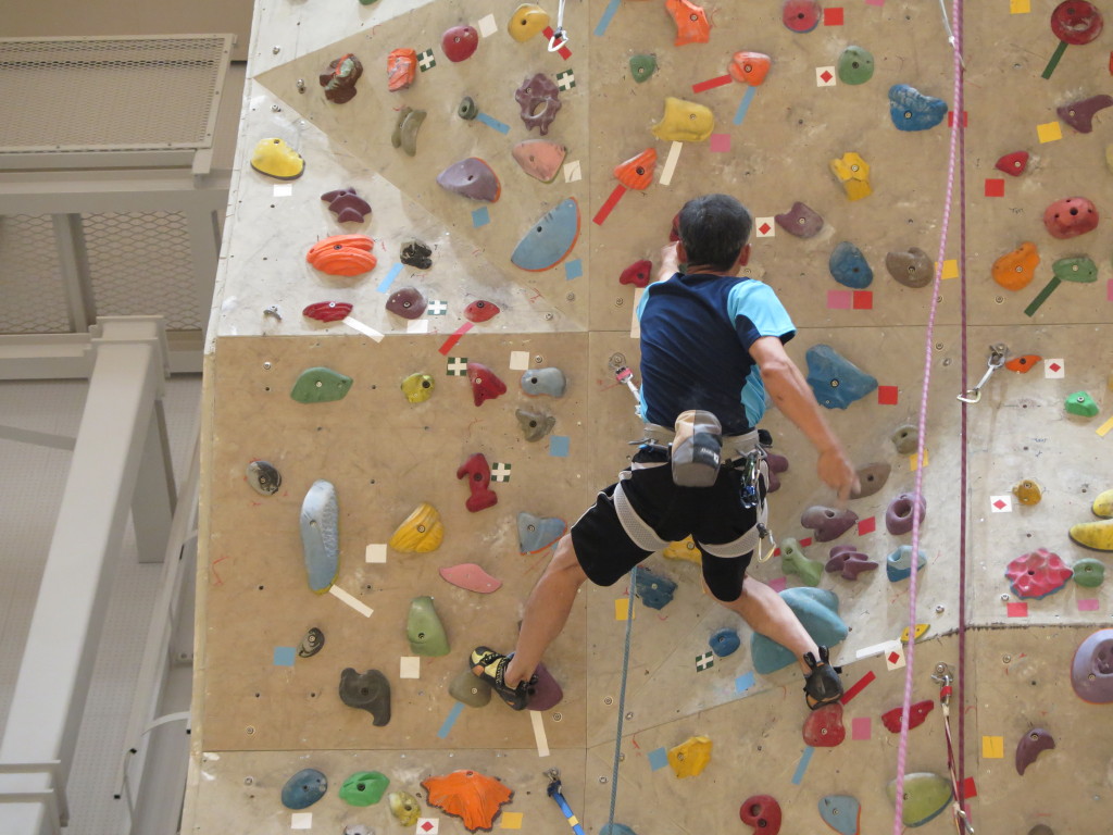 もう蛍の光が流れ、防護シートを片付け始めているなかのクライミング
